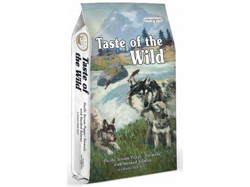 Kompletní krmivo pro štěňata Taste of the Wild Pacific Stream Puppy přibližuje lov ryb ve studených vodách amerických řek. Základ tvoří uzený losos a moučka z oceánských ryb. Velmi kvalitní a lehce stravitelné bílkoviny jsou doplněny ovocem, zeleninou, rajčatovým mlátem a batáty, přinášející vydatné sacharidy, úžasnou chuť a přírodní antioxidanty. Samozřejmostí je optimální poměr aminokyselin, DHA a obsah omega 3 a 6 nenasycených mastných kyselin. Zcela bez obsahu obilovin. Pravá chuť nedotčené a divoké přírody!