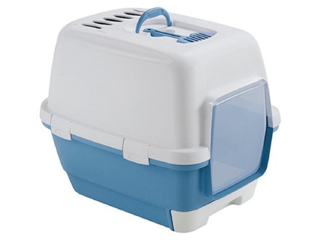 Prostorné kočičí WC pro kočičky s krytem, dvířky, protipachovým filtrem, úchytem na přenos toalety, lopatkou a vyjímatelným dnem, které Vám usnadní čištění toalety. WC je snadno omyvatelné.