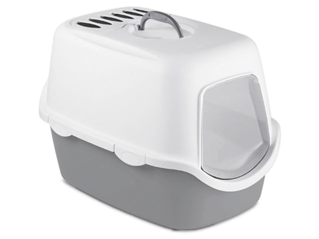 Prostorné WC pro kočičky s krytem, dvířky, protipachovým filtrem a úchytem na přenos toalety. WC je snadno omyvatelné.