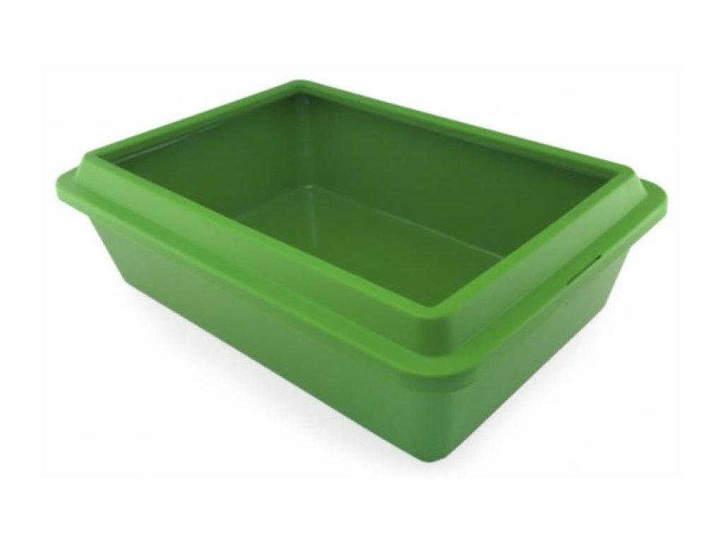 Otevřená toaleta pro kočky. Díky ochrannému okraji zůstane okolí toalety čisté. Ochranný okraj je odnímatelný a brání vypadávání steliva při hrabání.