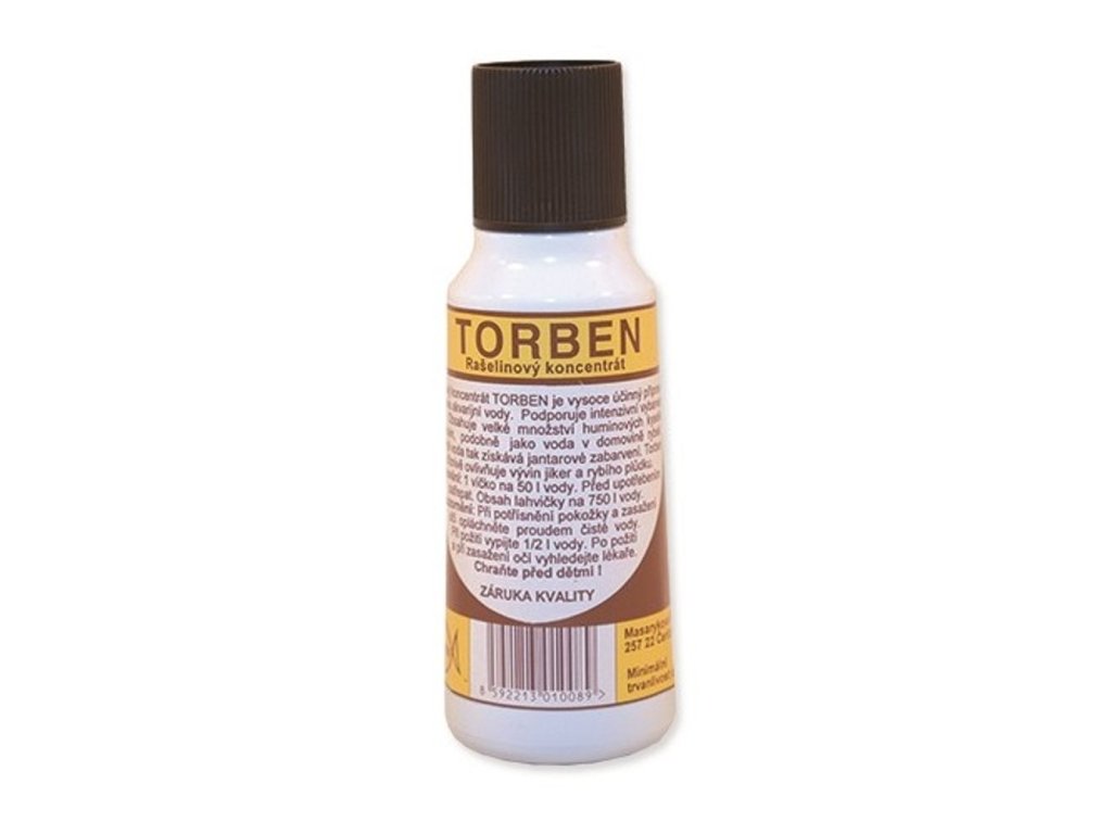 - Obsahuje velké množství huminových kyselin a tříslovin, podobně jako voda v domovině rybek, voda tak získá jantarové zabarvení