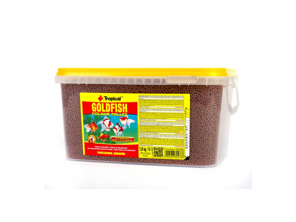 Základní krmivo zvýrazňující zabarvení ve formě drobných, po hladině vody plovoucích granulí, určené pro každodenní krmení všech druhů závojnatek a mladých kapříků koi žijící jak v akváriích, tak v zahradních jezírkách. Bohaté složení krmiva Goldfish Colour Pellet zohledňuje různorodou stravu kaprovitých ryb a zaručuje jim správný růst i výbornou kondici. V krmivu obsažená přírodní barviva, včetně dobře vstřebatelného astaxanthinu, způsobují, že barvy ryb, především červené, oranžové a žluté, se stávají intenzívní a získávají lesk. Rybí obranný systém posilují vitamín C a beta-glukan – přírodní imunostimulátor získávaný z kvasnic.