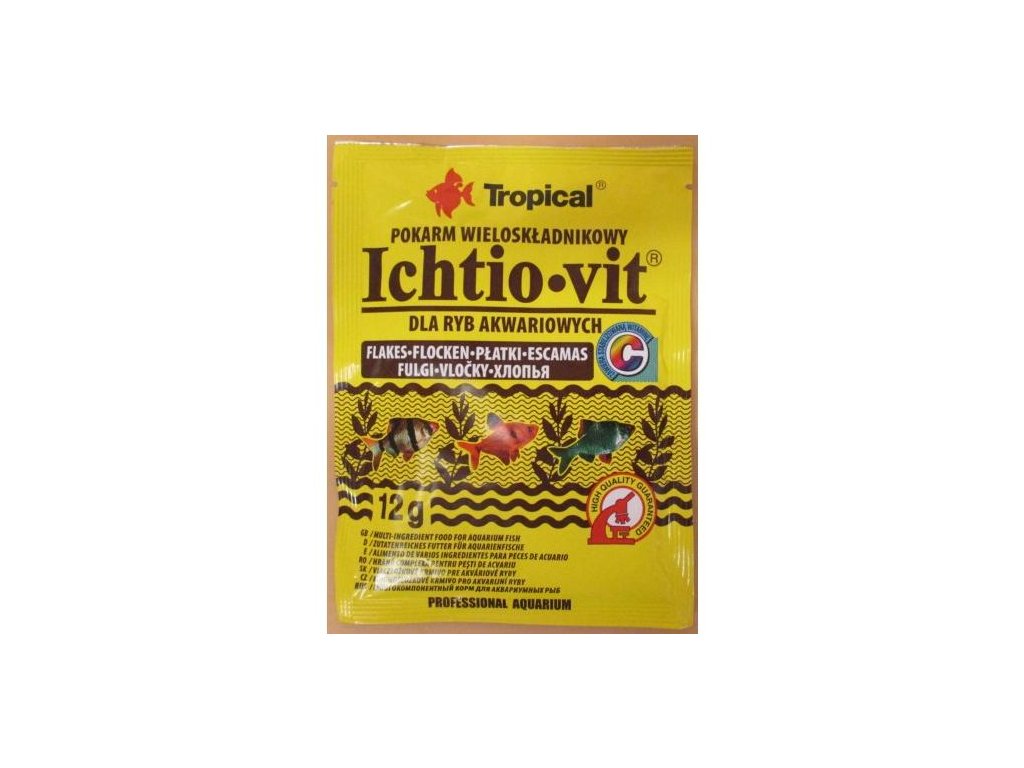 Mnohosložkové krmivo ve vločkách, získávané z nejkvalitnějších výběrových složek zvířecího i rostlinného původu. Určený ke každodennímu krmení všežravých ryb. Optimálně vyvážené složení a vhodné spektrum vitamínů a mikročástic zaručuje správný růst a vývoj ryb a zároveň kryje jejich energetickou spotřebu. Ichtio-Vit je často využíván v profesionálních chovech spolu se specializovaným krmivem řady Premium a Professional.