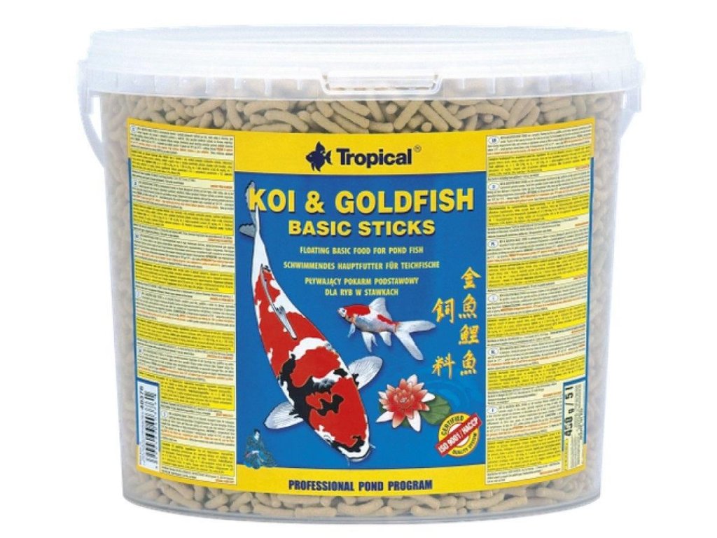 Kompletní krmivo ve formě plovoucích tyčinek pro barevné kapry koi, zlaté rybky a všechny další okrasné kaprovité ryb chované v zahradních jezírkách a nádržích