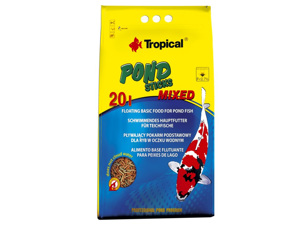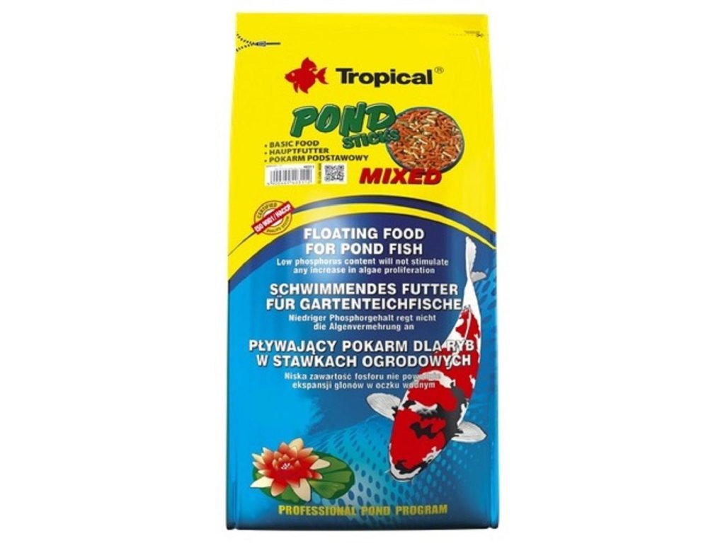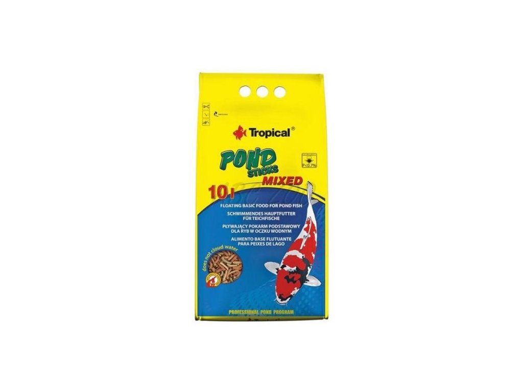Kompletní krmivo ve formě plovoucích tyčinek pro kapry koi, zlaté rybky a všechny další okrasné kaprovité ryb chované v zahradních jezírcích a nádržích