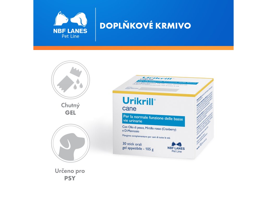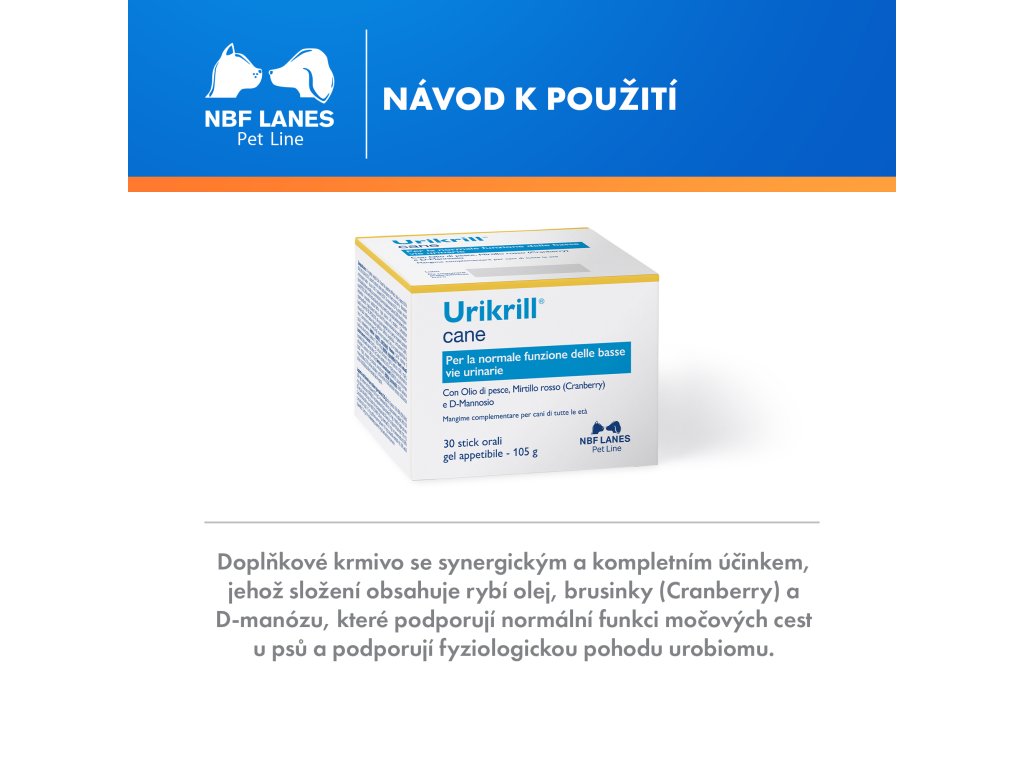 Doplňkové krmivo pro psy všech věkových kategorií s rybím olejem, extraktem z brusinky a D-manózou. Pro podporu funkce dolních močových cest.
