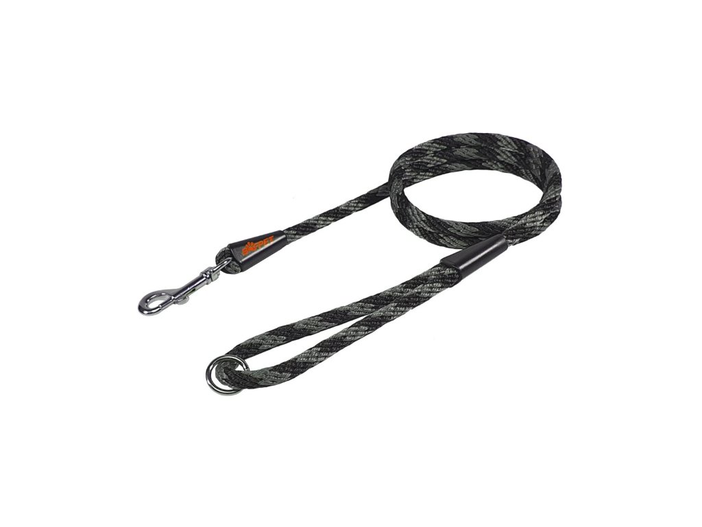 Klasické provazové vodítko je vyrobené z pevného lana v designu SPIRÁLA. Pro maximální pevnost jsou spoje vodítka vysokoteplotně svařené, prošité a překryté plastovou krytkou. V uchu je umístěn svařovaný kroužek pro zkrácení na polovinu a přehození přes tělo.