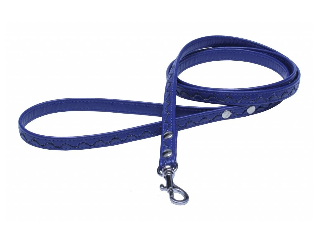 Vodítko koženka modré vlnky - tm.modré 1,2×120cm