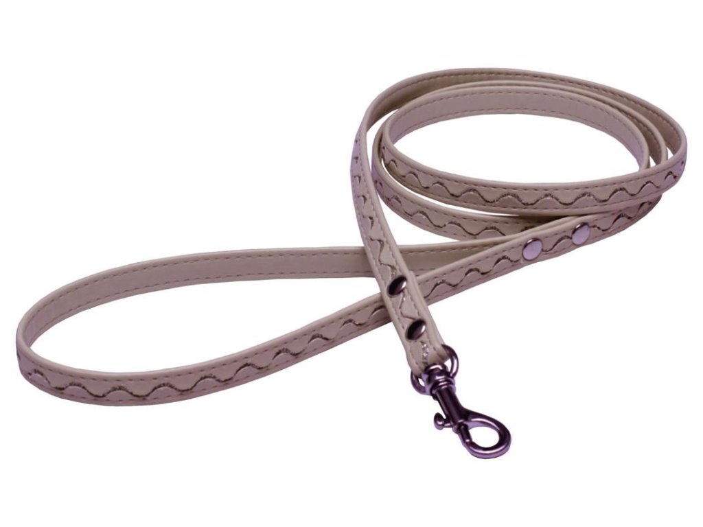 Vodítko koženka stříbrné vlnky - béžové 1,2×120cm