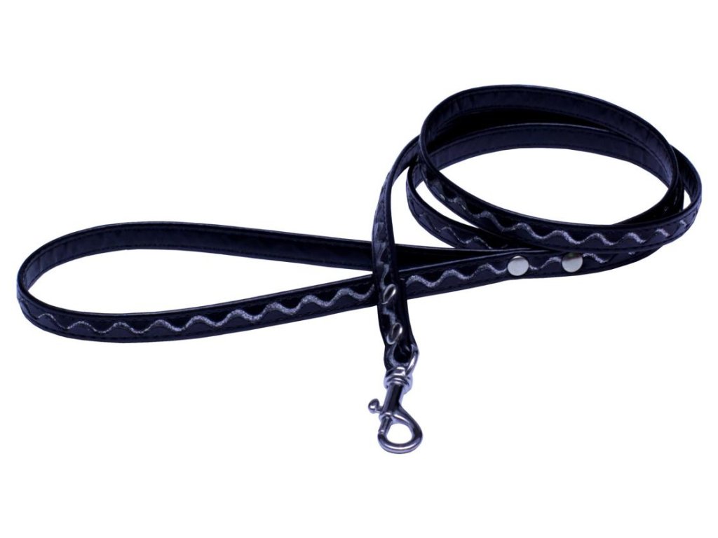 Vodítko koženka stříbrné vlnky - černé 1,2×120cm