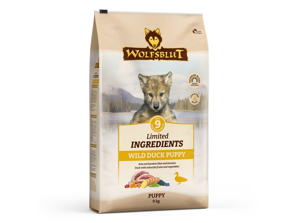 Vítejte ve světě WOLFSBLUT WILD DUCK PUPPY Limited INGREDIENTS – suchého krmiva pro rostoucí psy, které se zaměřuje na to nejdůležitější.