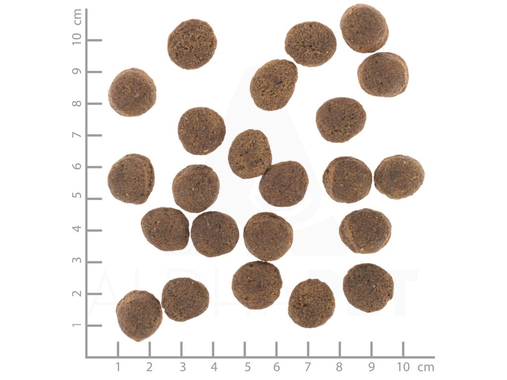 Hrubý protein 20%, hrubý tuk 10%, hrubý popel 9,5%, hrubá vláknina 2,8%, omega-6 mastné kyseliny 2,8%, omega-3 mastné kyseliny 0,5%, vápník 1,3%, fosfor 0,9%, draslík 0,8%, sodík.