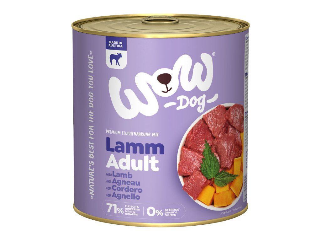 WOW Dog Jehněčí s dýní je kompletní mokré krmivo pro dospělé psy všech plemen se 71% obsahem masa a vnitřností od předního rakouského výrobce. Maso je doplněno zeleninou, bylinkami z Alp a vysoce kvalitním lněným olejem. Konzervy jsou plněné v rodinné rakouské firmě z místních, většinou alpských, surovin z čisté přírody.