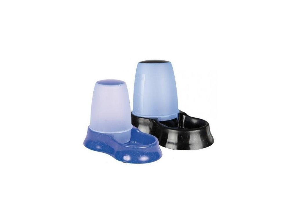 Průhledný zásobník umožňuje kontrolu množství krmení či vody v zásobníku. Má dva různé otvory pro vodu nebo pro krmivo. Zásobník má gumové protiskluzové nožičky, které zamezují posunování zásobníku při žraní. Možné využití pro psy nebo kočky na cestách.