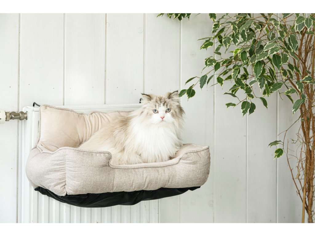 Praktická mini pohovka pro kočky nabízí pohodlné a teplé místo k odpočinku. Díky velkým kovovým konzolím ji lze snadno připevnit k radiátoru nebo na zadní stranu pohovky, takže šetří místo a zároveň poskytuje kočce klidný prostor pro relaxaci.