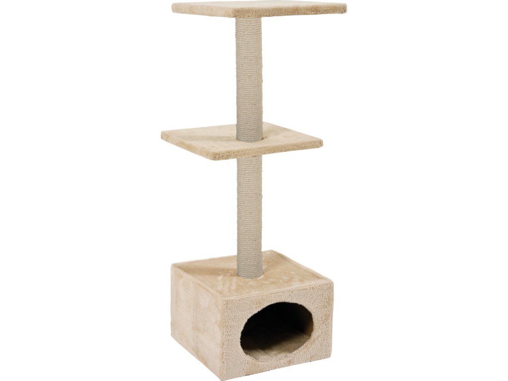 Škrabadlo DUO kombinuje několik prvků, které mu umožňují plnit mnoho různých funkcí v prostředí kočky. Škrabadlo má 2 sloupky potažené odolným konopným vláknem, které umožňuje zvířeti vyhovět jeho potřebě broušení a broušení drápků. Je vybavena budkou, která může sloužit jako úkryt nebo postel, a 2 policemi ideálními pro odpočinek a pozorování. Kabina a police jsou čalouněné měkkým materiálem příjemným na dotek. Škrabadlo se velmi snadno sestavuje, je pevné a bezpečné, díky nejkvalitnějším materiálům.