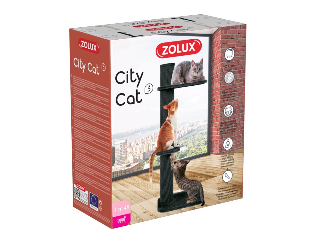 Škrabadlo City Cat dokonale zapadne díky svým čistým liniím a modernímu stylu do vašeho interiéru. Škrabadlo je robustní a stabilní díky kvalitě použitých materiálů a je tak vhodné zejména pro velká plemena koček.