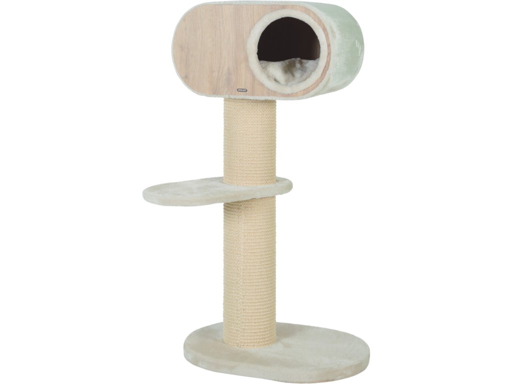 Nádherný kočičí strom/škrabadlo s čistými liniemi v art deco stylu dokonale splyne s interiérem vašeho domova. Díky kvalitním materiálům jsou všechny části robustní a pohodlné: melamínová jeskyně, sloupek pokrytý sisalovou rohoží, kožešinovou plošinou a polštář. Struktura tohoto kočičího stromu je vyrobena ze 100% FSC® - certifikovaného dřeva a sloupek je pokryt dlouhotrvající sisalovou rohoží. Jeskynní polštář je praktický a lze ho pro snadnou údržbu vyjmout. Jeskyně má jen 1 otvor, díky kterému se kočky cítí BEZPEČNĚ. Škrabadlo má vysokou stabilitu a je pro kočky velmi pohodlné.
